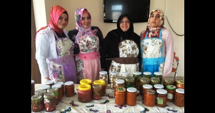 Pursaklar Belediyesi Nezaket Hanımive’ndeki pastacılık kursuna katılan kursiyerler şimdi de turşu, konserve ve ezme gibi kışlık yiyeceklerin nasıl yapılacağı öğretiliyor.