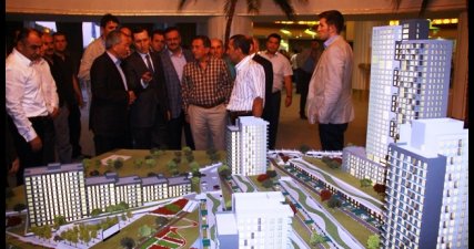Kocalar Beton tarafından düzenlenen konut projesi tanıtımı ile iftara programına katılan Başbakan Yardımcısı Emrullah İşler, girişe yerleştirilen proje maketini inceleyerek, proje hakkında Kocalar Beton Yönetim Kurulu Başkanı Sedat Koca’dan bilgi aldı.