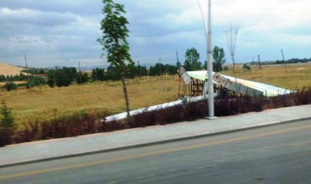 RÜZGARIN GÜCÜNÜ ANLAMAK ZOR OLMADI. DEV BORU TOTEM TABELAYI KOLAYCA EĞDİ.